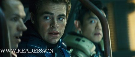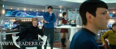 On the Bridge: James T. Kirk (Chris Pine), Leonard "Bones" McCoy (Karl Urban) and Spock (Zachary Quinto)