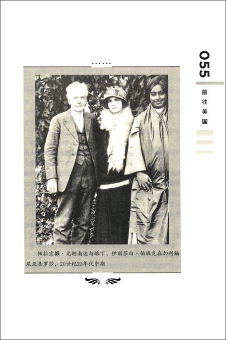 帕拉宏撒?尤迦南达在他的闻名于世的著作《一个瑜伽行者的自传》中,记叙了自己的生活。那为什么还要再来一本关于他的传记?答案很简单,他是如此谦逊,在他的书里,读者只能从他对待生活中种种事情的完美态度,来体会作者精神的伟大。我在1948年读了《一个瑜伽行者的自传》,并沉浸在其完美之中。于是我立刻坐车开始了横跨美国的征程:从纽约到洛杉矶。那正是在我已经为寻找心中的上师几乎绝望的时刻。见到尤迦南达的时候,我脱口而出的第一句话就是“我想成为您的信徒”。与其初见,他便接纳了我。蒙其恩泽,作为他的贴身弟子,我陪他走过了他生命最后的三年半光阴。