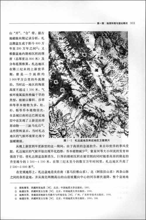 在宏观地理上,西藏西部的阿里地区,是青藏高原与以帕米尔高原为中心的亚洲大陆中部“山结”地带相连接的极高地区,平均海拔达4500米以上,故有“世界屋脊的屋脊”之称。阿里地区所属的札达县,在西部极高地区中则是一个比较特殊的地理单元,平均海拔在4000米左右,境内最高山峰海拔6795米,最低的象泉河谷地段仅2700米。在西藏地貌分区中划为“札达盆地亚区”,属于西藏高原“藏南山原湖盆谷地地貌区”(图1—1)①。