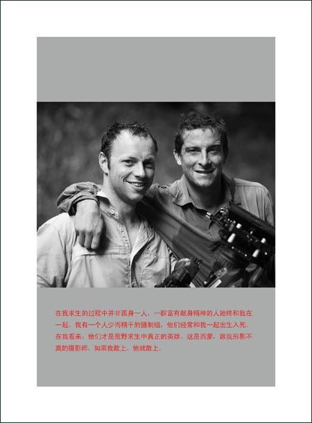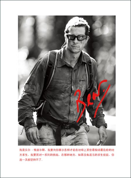 是的,如果你看过Discovery Channel的《荒野求生》,那么,你肯定知道,这个死不了的人就是贝尔。他是全球知名的探险家、演讲专家、慈善人士、求生类节目野外主持人,第一个成功使用动力滑翔伞飞跃珠穆朗玛峰的人,迄今为止统领全球2800万童子军最年轻的主席,英国中产阶级最尊敬的七个人中的第二位(第一位是英国女王);他有一个漂亮的妻子和三个儿子,他们平时住在威尔士北部的一个小岛上,或者伦敦泰晤士河畔一艘自己改装的驳船里,但大多数时候,我们的贝爷,不是已经在危险的地方,就是在奔赴危险的路上。如今,他用《荒野求生》的名字出版了一本自传,让你一窥“真硬汉”养成的秘密,于是他的名头又多了一项:畅销书作家。