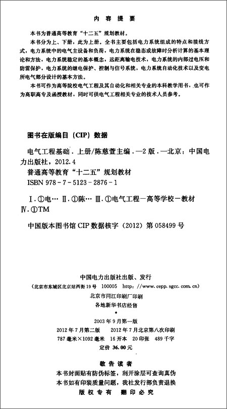 《普通高等教育"十二五"规划教材?电气工程及其自动化专业(研究性系列):电气工程基础(上册)(第2版)》是为宽口径的“电气工程与自动化”或“电气工程及其自动化”专业编写的一部专业基础教材,是在“电工基础”、“电机学”、“电子技术”、“计算机技术”等基础课程后的一门大型专业平台课。可作为高等院校电气工程及其自动化和相关专业的本科教学用书,也可作为高职高专及函授教材,同时可供电气工程相关专业的技术人员参考。